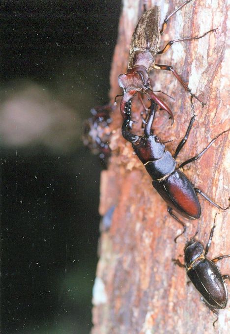 ミヤマクワガタ(上♂ 下♀) ノコギリクワガタ(中)